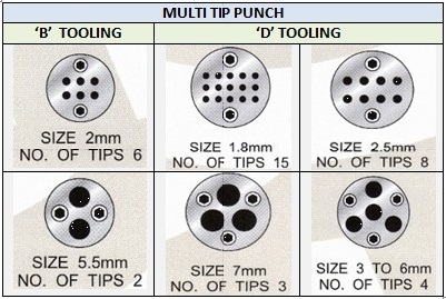 The Following are the different types of Tooling, dimensions and maximum and possible tablet size: