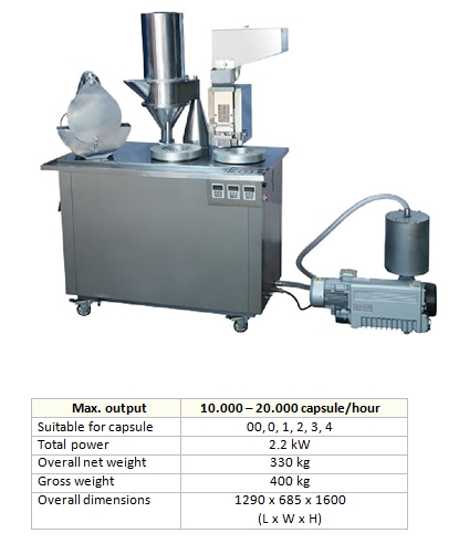 Mesin ini mudah digunakan untuk proses pemisahan, pengisian dan penguncian. Mesin dan panel terbuat dari stainless steel, yang sesuai dengan persyaratan sanitasi farmasi. Ini juga cocok untuk mengisi bubuk obat granular dan produk kesehatan ke dalam kapsul.